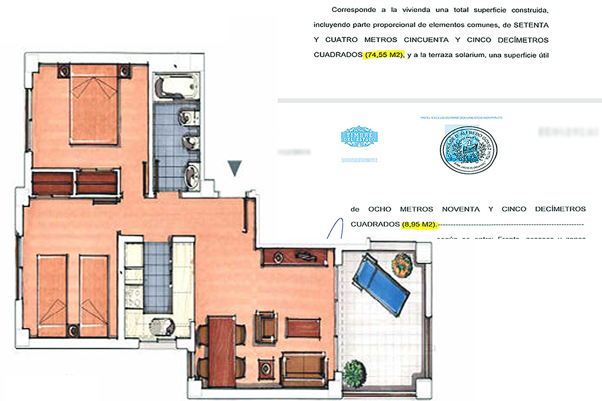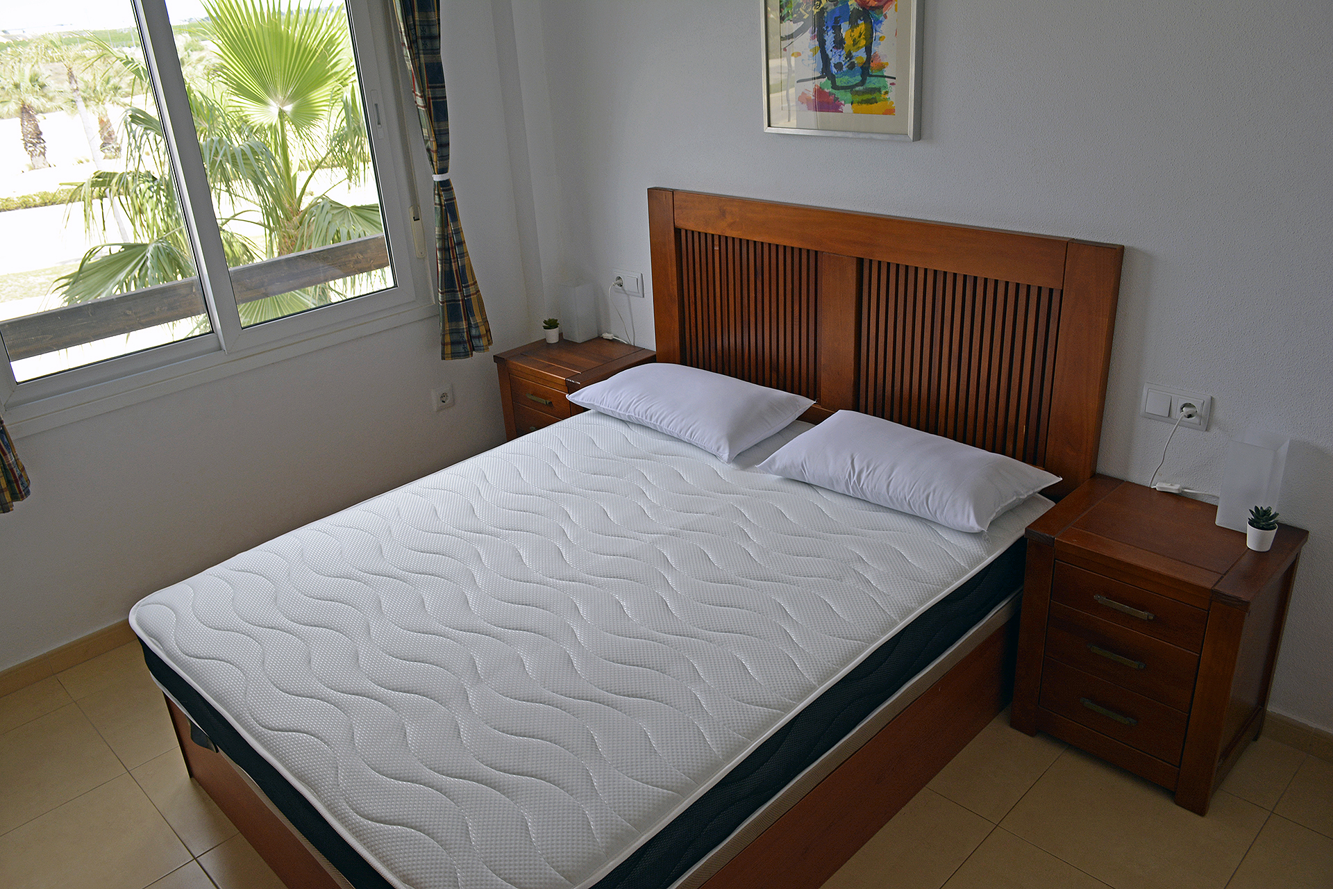 The apartment is 74 m2 built plus a private terrace of 9 m2 (see notarial deed on the floor plan). The apartment has 2 exterior and bright double bedrooms with unobstructed views to the Cabezo Gordo mountain. All the windows in the apartment are aluminum with double glazing.
