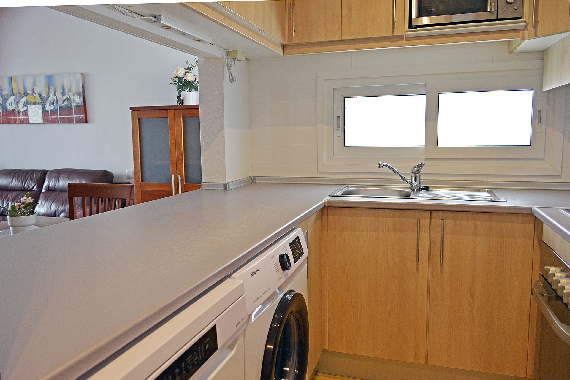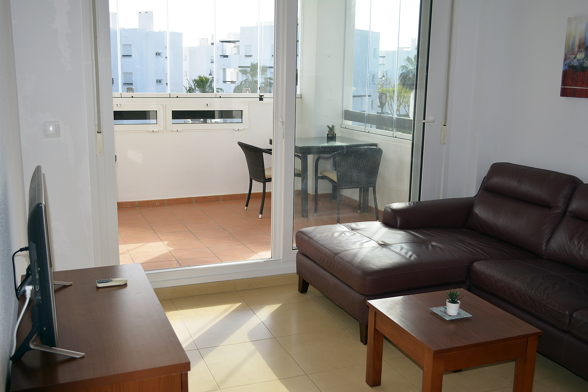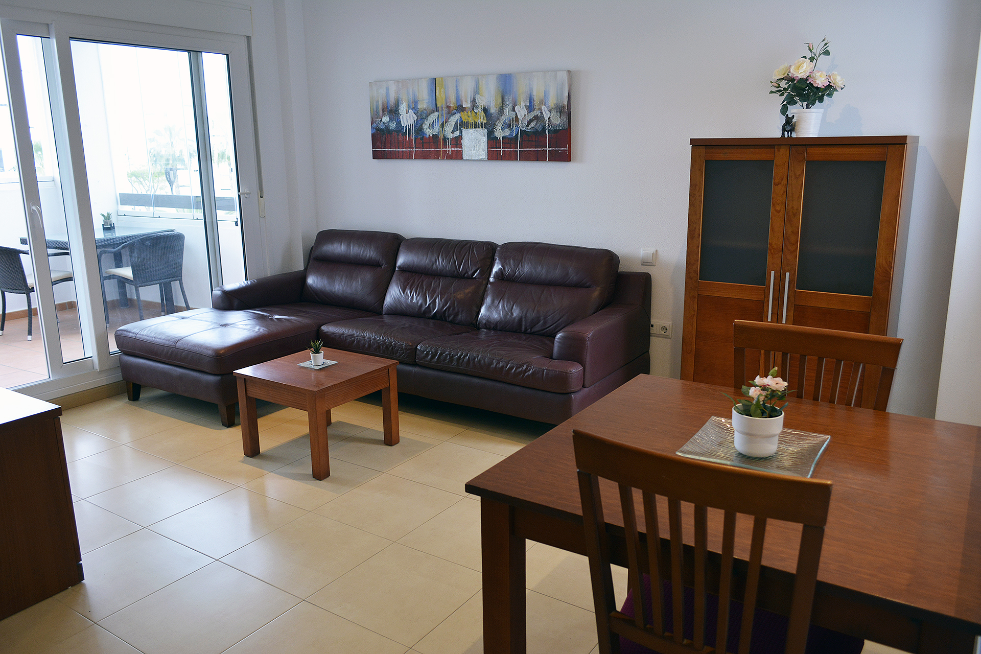 This apartment in phase 1 belongs to the biggest two bedroom apartments that were built in Las Terrazas De La Torre Golf Resort. Therefore the living room, with an extra window, and kitchen are larger than the the other two bedroom apartments.